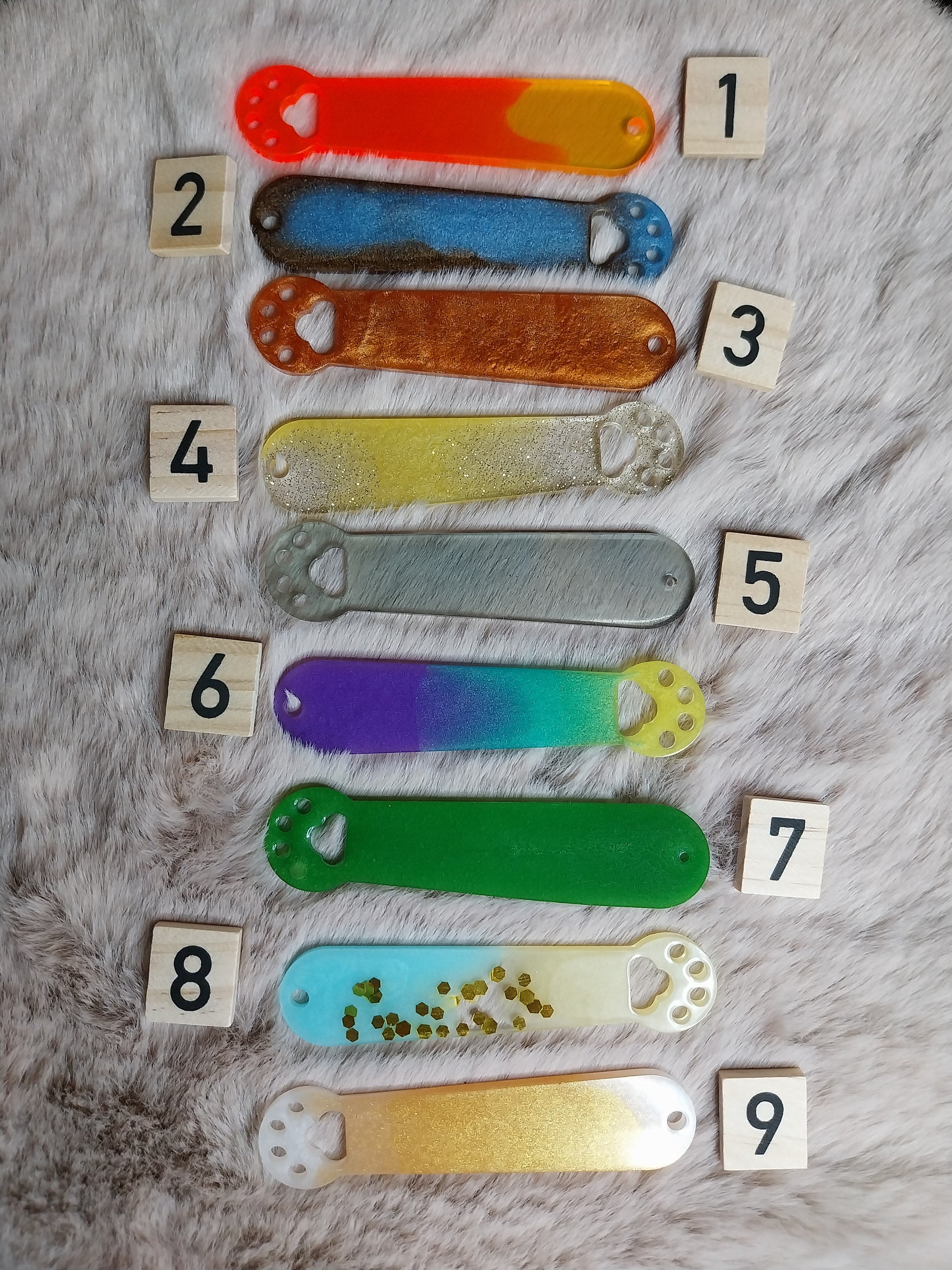 Marque-pages en résine époxy.